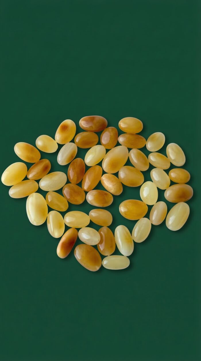 Кожна намистинка виготовлена з маленького камінчика бурштину та несе в собі все тепло та сяйво накопичене ним протягом 40 мільйонів років. Вільна видовжена форма наближена до зернятка гармонійно підходить для виготовлення практично будь якого типу прикрас. Гладенька глянцева поверхня кожної відполірованої до дзеркального блиску намистини яскраво відблискує на сонці, тим самим підкреслюючи неповторніть та унікальність Вашої прикраси.